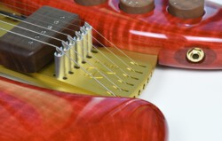The ORION Magma Queen is a very special edition with a magma red stained flamed maple body. Volcanoes often bring rare metals from the earth’s interior to the surface. To express this, the metal parts have a gold finish.