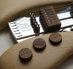 Fine natural materials are the theme of the ORION Noble Natural. Bright oiled birch wood on the body harmonizes with the maple of the neck. The elaborately inlaid fretboard made of European walnut sets colorful accents. To underline the noble character, the aluminum middle section has been polished. The grain of the fretboard continues seamlessly into the truss rod cover.