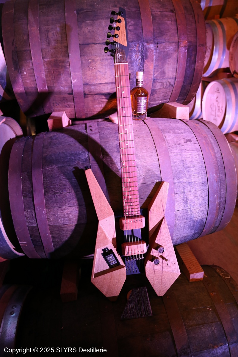 Who can wait until a whisky has finally been properly aged? To protect the whisky from being enjoyed too early, a small bottle has been glued into the body of this SIRIUS. Anyone who wants to get their hands on it will have to saw open the guitar! So it’s better to wait a few decades and play the guitar properly in the meantime.