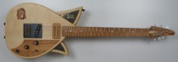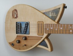 Die LEO Lion Theme ist die Markenbotschafterin der „Löwen“-Serie. Das Löweninlay am Body besitzt Holzstrukturen, die kleiner als 0,5mm sind. Die Pupillen sind aus schwarzem Perlmutt gefertigt und funkeln gefährlich im richtigen Licht. Das Löwenthema wird am Hals mit Löwenpfoten aus weißem und schwarzem Perlmutt und an den Potiknöpfen stimmig wiederholt. Passend zu diesem Ambiente sind die Metallteile aus patiniertem Messing gefertigt.