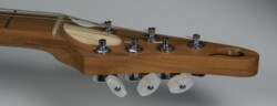 Wie bei den bekannten Klassikern wird am Hals auf ein aufgeleimtes Griffbrett verzichtet. Das Kirschholz ist ähnlich hart wie Ahorn und hat eine wunderschöne Maserung.
