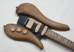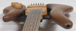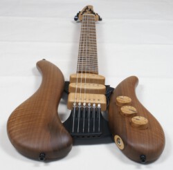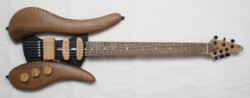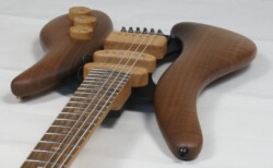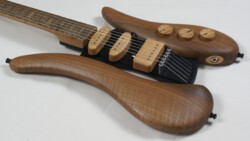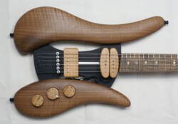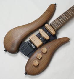 Hier ist eine Ausführung mit wunderschön geriegeltem Walnuss-Korpus abgebildet.