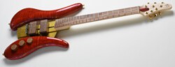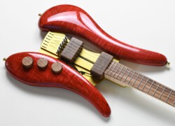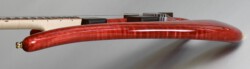 Für den Hals habe ich für einen etwas wärmeren Ton liegende Jahresringe und eine 628mm-Mensur gewählt. Trotzdem erhält man aber mit einem Ahornhals mehr Höhen als mit einem Mahagonihals. Zusammen mit den Amber Spirit of 59 Pickups ergibt sich eine eigenständige Klangnote welche sich wohltuend zu den bekannten PAF-Mahagoni-Spektren differenziert. Beim Spielen auf der Magma Queen kann man dabei richtig dahinschmelzen.