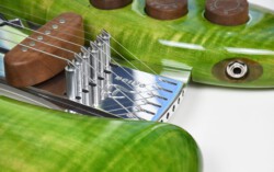 Der geölte Ahornhals hat als besonderes Highlight ein eingesetztes Walnuss-Griffbrett. Der Maserungsverlauf des Griffbretts setzt sich nahtlos in der Halsstababdeckung fort. Eine sehr aufwändige Option.