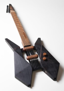 Mit einem Mahagoni-Hals aus einer alten Treppe von 1971 schiebt die Gitarre schon sehr kräftig an. Wer es noch härter will, kann optional auch einen Ahornhals ordern.